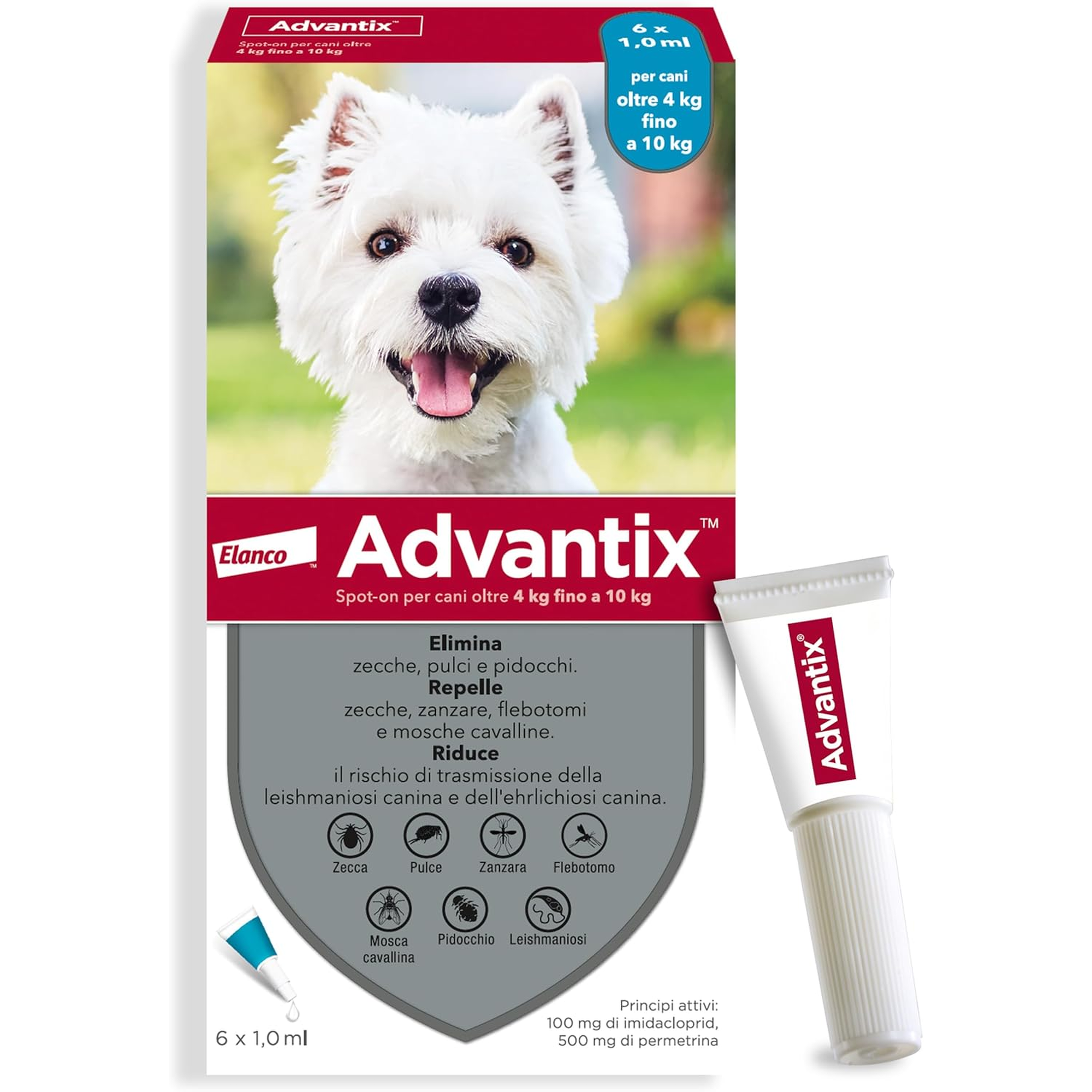 Advantix Spot-on antiparassitario per Cani da 4 kg a 10 Kg, 6 pipette da 1 ml.