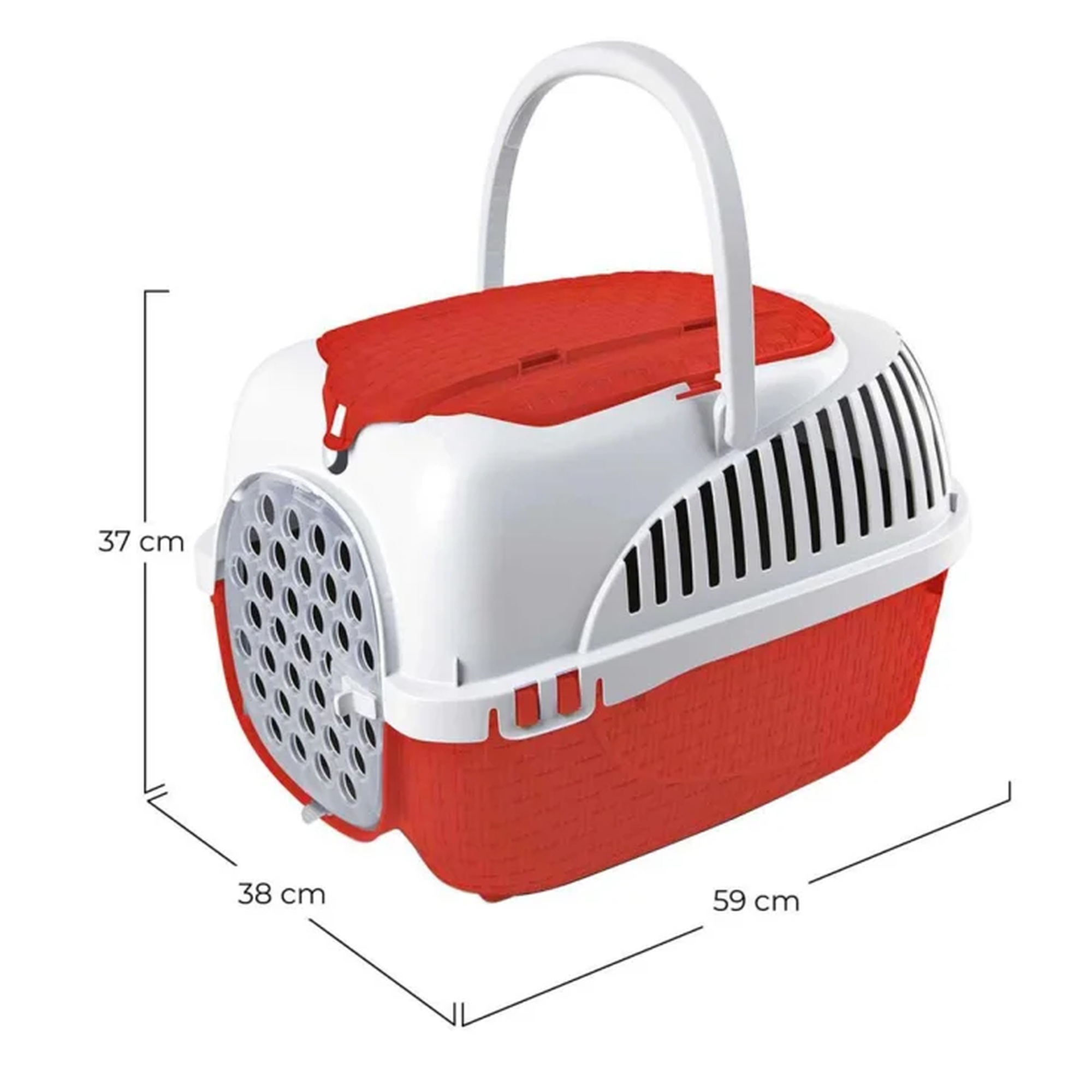 ร dotato di tripla chiusura per una maggiore sicurezza. Per fissarlo correttamente in auto, si consiglia di utilizzare la cintura di sicurezza del veicolo. Dotato di una maniglia sul tetto e di un piccolo vano portaoggetti dove riporre guinzaglio, collare o snack. L’interno รจ impermeabile e presenta fessure di ventilazione. Resistente alla corrosione. Le sue dimensioni complessive sono 59 x 38 x 37 cm (lunghezza x larghezza x altezza). Facilissimo da pulire con acqua e sapone neutro. Evitare l’uso di prodotti chimici che potrebbero danneggiarlo. Scegli l’opzione migliore per il tuo animale domestico.